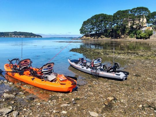Los kayaks utilizados para estas salidas tienen diferentes formas y sistemas de propulsión. De pala, de hélice a pedales, paso a paso o incluso diferentes motores pequeños, alimentados por baterías de litio, que aumentan considerablemente las distancias que recorres en el agua, sin cansarte. Estos pequeños motores son la tendencia actual, y a la que se están apuntando todos los distribuidores.